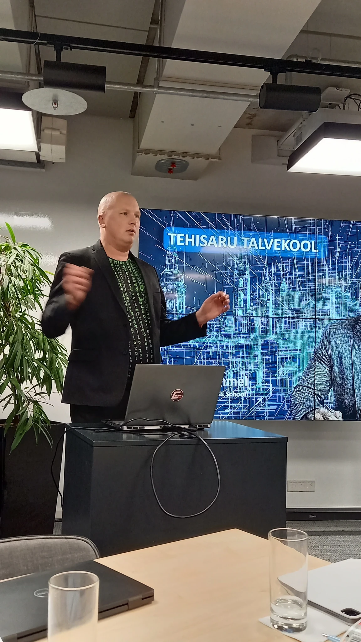 TI-hüppe õpilaste programmi juht, JA Õpilasfirma vilistlane Mihkel Mariusz Jezierski tutvustas TI-hüppe eesmärke ja kuidas saaks tehisaru rakendada koolis Õpilasfirma programmis.